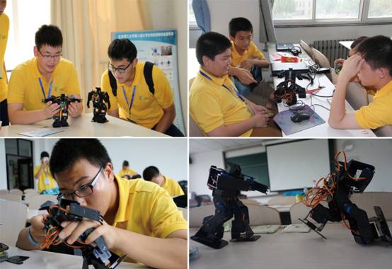 夏令营自7月12日-19日共8天,其中安排了理论学习12学时,集中学习了机器人基本组成原理及SolidWorks三维建模软件基础知识及实用技巧;设计装配14学时,集中讲述了机器人装配的方法、步骤、过程及实际操作;编程实践14学时,集中进行了编程练习、遥控操作等内容;竞技比赛10学时,分类别进行了机器人舞蹈、机器人格斗等竞技比赛;实地参观10学时,对良乡校区图书馆、大学生创新实践基地及校园进行了参观等,总体课程共计约60学时。课程安排周密、详尽,使营员达到理论与实践相结合,学习与提高相结合,竞技与趣味相结合,圆满完成既定目标。
