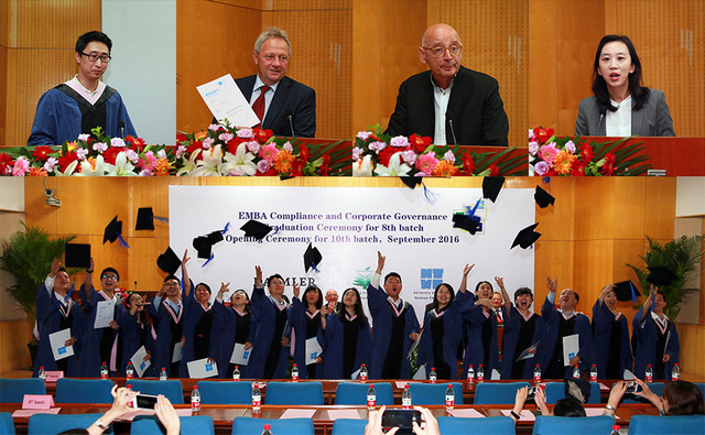 满静女士说,每年戴姆勒公司人力资源部都会挑选一批优秀员工参加“合规性与公司治理”的EMBA项目的学习。看到一批已有一批学员在学习和工作中成长起来,感到由衷地高兴。戴姆勒公司一直以来致力于人才的培养,紧跟时代和市场的变化,迎接新的挑战。她希望新学员在丰富的教学资源和公司的大力支持下学有所成。