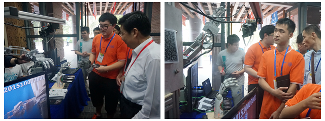 北理工机电学院的参赛项目《自适应语音肌电信号混控灵巧手》、《多模联控机械臂》荣获由学生推选的“我最喜爱的项目”和专家评选的“最佳创意项目”称号。其中《自适应语音肌电信号混控灵巧手》在上述两个奖项中均排名第一,《多模联控机械臂》同时夺得“创新方法应用奖”。学院副书记、副院长陈军到现场观摩指导并慰问参赛同学。