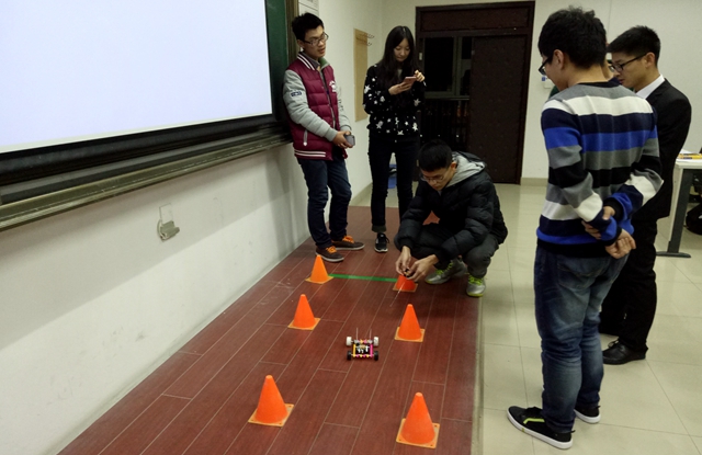 11月19号,“world of tank”遥控小车比赛在理教404、405教室火热进行,第一场活动优胜的40组选手进入了第二阶段比赛。相对比之前的比赛,本次遥控小车比赛,零件数量更多、技术要求更高,而每组选手也愈发专注、团结一致,分工明确:一人双手拿设备,细致的绕着铜丝,制作动力之源——马达;一人各种工具并用,一点点地拼接车体,调整零件位置;一人仔细地拼接电路,不断测试。最后40辆小车陆续开上了赛道展开时间与速度的竞技,并由专业评委打分确定了可以晋级最终决赛的30组名单。