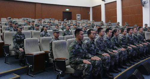 大会在雄壮的《中国人民解放军军歌》中开始,张主任宣读了上级批复:批准2016级本科生共109人成为国防生,国防奖学金于2016年9月开始发放。随后,主席台领导为国防生代表颁发国防奖学金证书。