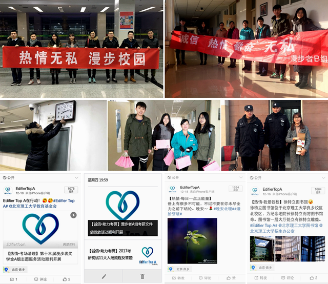 2004年至今漫步者奖学金已在北理工成功评选了十二届,今年是第十三届。本届漫步者奖学金的评审过程中充分展示了当代大学生的青春朝气,通过两小组形式多样、内容丰富的小组活动,在全校范围内广泛宣传了漫步者奖学金所倡导的“诚信、热情、勤奋、无私”的精神,树立了一批优秀学子榜样。16位候选人所做的主题活动,深入了校园各个角落,以自身的行动践行了漫步者奖学金的宗旨。活动过程中运用新媒体平台,将小组成果在校园间传播,让更多人受益。