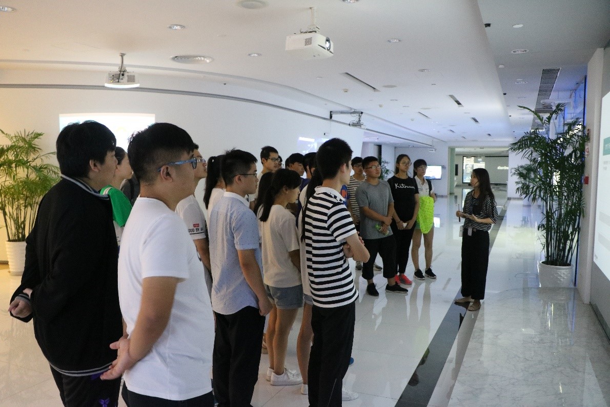 上午9点,公司讲解员带领学生们参观了软通动力智慧展厅,详细讲解了软通动力的发展历程,并对公司在智慧城市、信息技术服务、物联网等领域的重大科技创新成果进行了介绍和展示,引导同学们畅想未来智慧城市的价值与生态。