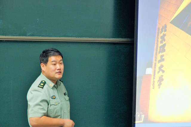 伴随着微电影的观赏,人文与社会科学学院党委副书记、副院长李冰结合校史,向大家系统介绍了北理工的办学特色与成就,其中结合历次阅兵,学校底蕴深厚的军工特色文化深深的吸引了这些文科同学。将微电影的内容与同学们的学习、工作实际相结合,李冰还向新生们提出了北理工学子要具有服务国家重大战略需求的使命担当。