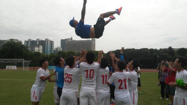 比赛结束后,师生相互拥抱庆祝这场来之不易的胜利,大家呐喊着,欢呼着,这个冠军对于前不久在大学生足联赛超级组全国总决赛折戟的北理工球员来说是一次内心积压已久不甘情绪的宣泄,在首战完胜2017年大学生足球联赛超级组总冠军以太原理工大学为班底的山西队后,最终走上冠军领奖台并重新证明了自己。