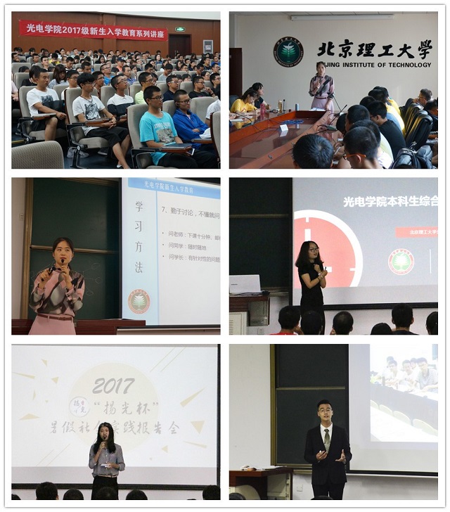 2017年9月11日至17日,光电学院开展了2017级本科新生入学教育系列活动。主要邀请学校相关部门领导、学院领导、班主任老师等开展专题讲座和相关工作介绍,组织学院社团组织负责人开展宣讲和经验分享等。
