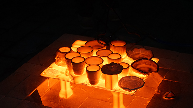 在项目中,刘博文老师不仅生动详细向同学们介绍了乐烧发展历史,美、日乐烧流派的区别以及乐烧烧制的知识,还组织参观了陶瓷艺术家实验室,亲自演示了从揉泥、拉坯再到修坯的陶器制作过程,与大家分享了他多年总结的经验与技巧,并耐心示范。在实践环节中,在刘老师的耐心指导下,全体同学进行乐烧陶艺创作,最后经过烧制,形成作品。