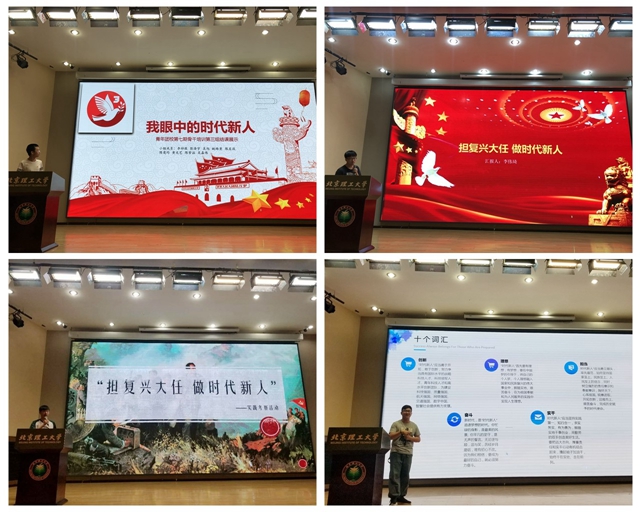 典礼在《中国共青团团歌》中开始。来自材料学院青年团校第七期骨干培训班的9个团队就“担复兴大任,做时代新人”主题进行了社会实践汇报。各小组分别赴BB贝博艾弗森官方网站校史馆、中国人民革命军事博物馆、中国人民抗日战争纪念馆等地进行实践参观,并总结了实践感悟。此外,各小组分别讨论总结了“时代新人”的一个标准、一个故事、一段“新人语录”和十大高频词汇等相关内容,对“时代新人”做出了自己的理解。