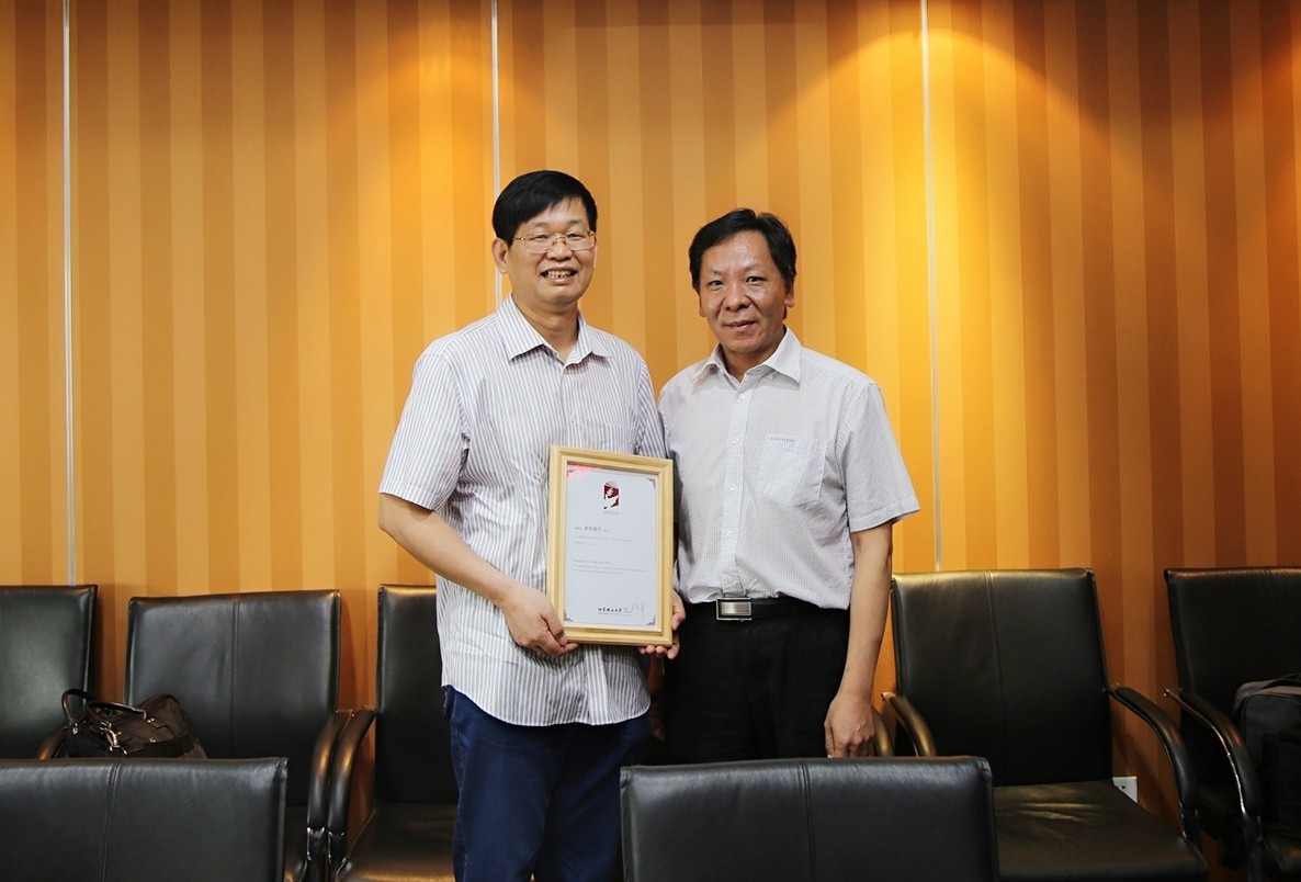 讲座前,汪本聪为欧阳晓平院士颁发了北理工“百家大讲堂”讲座证书。