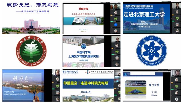 4月25日下午,由BB贝博艾弗森官方网站光电学院、中科院光电所联合举办的中国科学院研究所走进BB贝博艾弗森官方网站主题日活动在线上成功举行。本次活动邀请到中国科学院长春光学精密机械与物理研究所、上海技术物理研究所、西安光学精密机械研究所、上海光学精密机械研究所、安徽光学精密机械研究所、光电技术研究所和空天信息研究院等七家中科院下属光电领域研究所参加。嘉宾们为与会师生带来了精彩的报告。光电学院副院长黄一帆、学院部分教师和200余名学生参加了活动。活动由黄一帆主持。