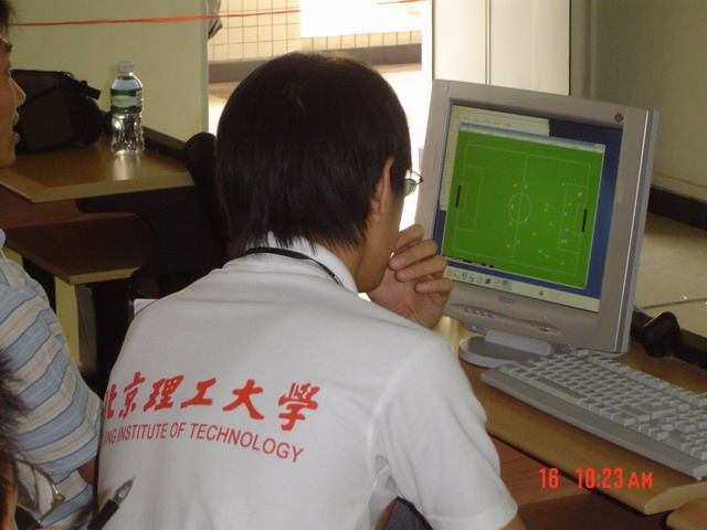 在整个参赛的日子里,我们的队员经常是昼夜奋战,异常辛苦。白天要一边参赛一边派人拍摄“重点”对手录像;夜里要集体开会研究不同战法,还要争分夺秒地修改程序代码。努力做到周密筹划、精心布置、全力备战。在比赛中,场上是惊心动魄的激烈角逐,场外同样需要斗智斗勇。领队和队员们一同在场边侦察敌情,设计战术,分析排位,决策战法,俨然一场真刀真枪、有胆有识的较量。我们有许多场比赛是在极其不利的情况下反败为胜的。正是由于BB贝博队员那种拼