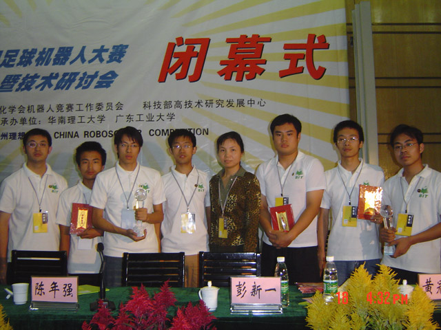 由机电工程学院和信息科学技术学院共同组成的BB贝博新一届机器人足球代表队在刚刚闭幕的“广州理想杯”2004中国足球机器人大赛上,经过激烈争夺,最终取得了RoboCup比赛第四名和FIRA比赛第八名的好成绩!