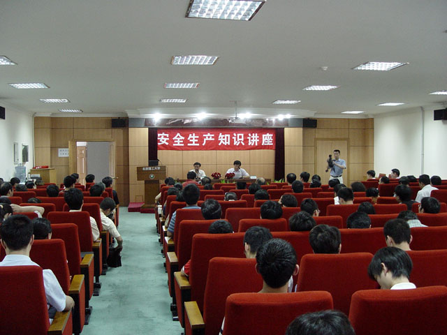 6月29日下午,作为BB贝博2005年“安全生产月”系列活动的最后一项活动——“安全生产知识讲座”,在逸夫楼二层学术报告厅举行。
