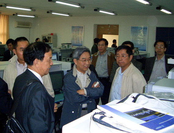 中心主任罗伟雄教授向北京市教委领导及专家介绍实验室情况