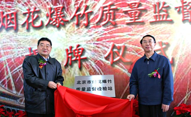 校党委书记焦文俊和市质监局负责人为北京市烟花爆竹质量监督检验站揭牌。