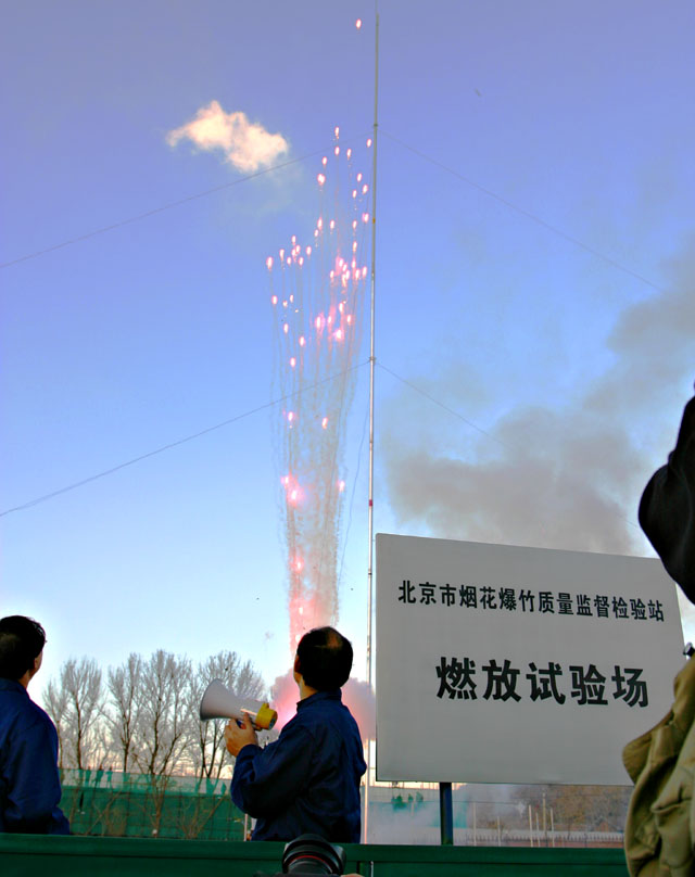 检验站人员燃放了大量烟花爆竹,检测了一些品种的噪音分贝,对火药的爆发点、药剂的撞击、摩擦、火焰等药剂敏感性进行了检验。