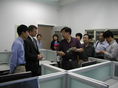 出席签字挂牌仪式的代表有:DALLAS/MAXIM公司产品线总裁(Business Unit Director) Scott Jones先生和产品应用经理(Regional Application Manager)刘武光先生,BB贝博艾弗森官方网站代表实设处处长李振键教授,信息科学技术学院院长仲顺安教授,副院长廖晓钟教授,副院长张笈教授以及电子技术基础课程主讲教授李庆常教授,检测技术与自动化装置学科负责人彭光正教授和电子技术教研室全体老师。