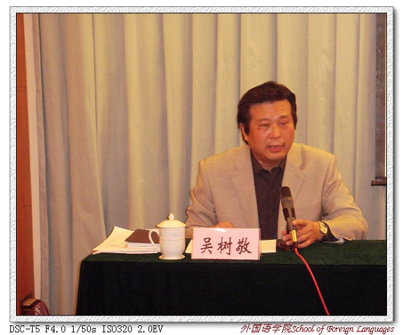 外国语学院院长吴树敬,党委书记王文清,副院长李京廉、谭利群、林彤,吴文君以及学院各教研室老师近100人参加了此次研讨会。