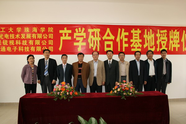 2007年11月2日上午,珠海学院举行了与珠海银邮光电技术发展股份有限公司、珠海安联锐视科技有限公司、珠海市均通电子科技有限公司三家企业的产学研合作基地授牌仪式。
