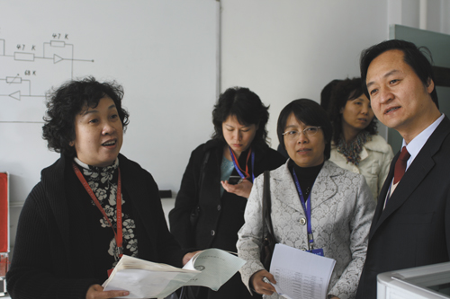 专家组成员、国家教学名师、武汉理工大学教务处处长刘泉听完两节课后,又走访了信息科学与技术学院,就本科专业设置、教学监控制度、学生实习情况与教师代表进行了交流,并提出了一些指导意见。下午,她又考察了电工电子教学实验中心、工程训练中心、计算机实验教学中心,并对学生实践能力培养进行了详细询问。