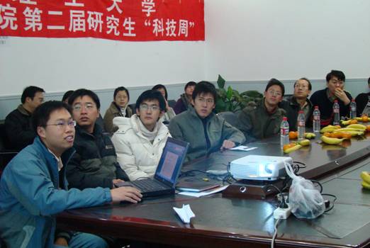本次活动中,我院严峰、徐倩、杜忠梁三名研究生代表和北京航空航天大学两名研究生分别就他们的研究进展做了精彩的报告。报告内容涵盖了航天、卫星、武器、导弹战斗部、爆炸安全等前沿课题,报告人向与会同学详细介绍了国内外的研究进展、技术难题以及他们的研究成果和工作展望。观众认真地听取报告并提出疑问,在与报告人的交流中加深理解。