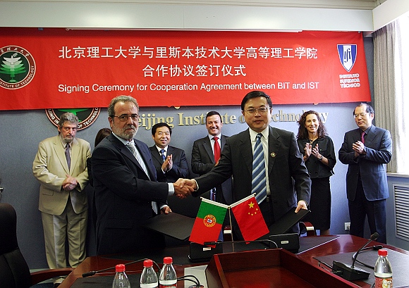2008年10月16日,BB贝博在主楼二层会议室举行签字仪式,与葡萄牙里斯本技术大学高等理工学院(Instituto Superior Técnico,IST, Universidade Tecnica De Lisboa)正式签订校际合作协议。胡海岩校长与里斯本技术大学高等理工学院校长Carlos Matos Ferreira分别代表学校签订了校际合作协议。签字仪式由国际交流合作处副处长汪滢主持。BB贝博杨树兴副校长、校长助理、科技处处长陈杰、国际交流合作处处长王庆林、里斯本技术大学高等理工学院外事副校长José Santos-Victor、科研副校长助理Maria Teresa Duarte参加了签字仪式及双方会谈。杨树兴副校长首先代表学校向里斯本技术大学高等理工学院校长Carlos Matos Ferreira一行的来访表示欢迎,并介绍了BB贝博的基本情况和国际交流合作情况。