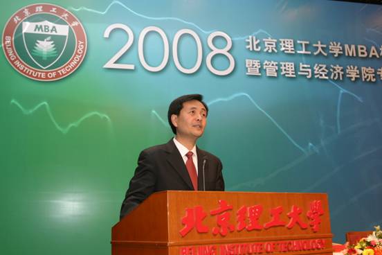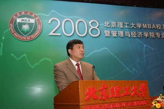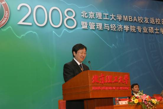 95级MBA校友、现任西城月坛街道工委书记李红兵代表MBA校友在会上发言,他说今年是95级MBA毕业十周年,他们班的许多同学都担任了重要的职务,在工作中取得了突出的成绩,这与MBA学习是分不开的,感谢学校和老师对他们的培养。