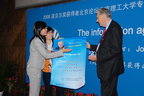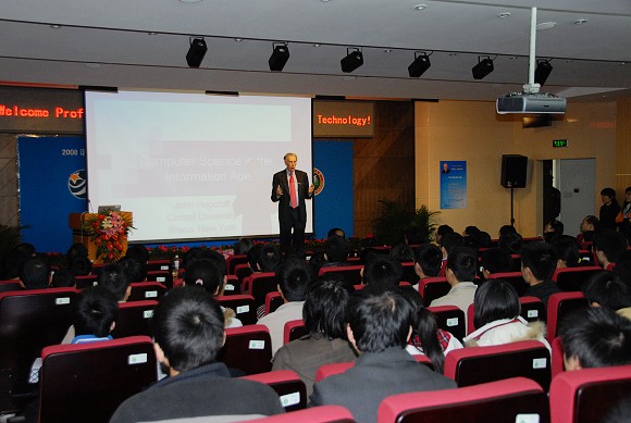 同时,刚刚被聘为BB贝博名誉教授的图灵奖获得者(1986年)约翰·E·霍普克洛夫特在BB贝博图书馆报告厅作了精彩的报告。约翰·E·霍普克洛夫特的报告题为《信息时代的计算机科学(Computer Science in the Information Age)》。约翰教授认为,我们生活的各个方面都正在着发生深刻的变革,而体会到这个变革并做好准备的人将会获得巨大的收益。