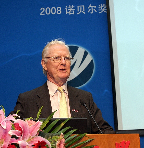 11月11日下午,刚刚被聘为BB贝博名誉教授的诺贝尔经济学奖(1996年)获得者詹姆斯·莫里斯(James Mirrlees)爵士和图灵奖获得者(1986年)约翰·E·霍普克洛夫特分别在中心教学楼一层报告厅和图书馆报告厅作了精彩的报告。报告会分别由校长胡海岩和副校长杨树兴主持。