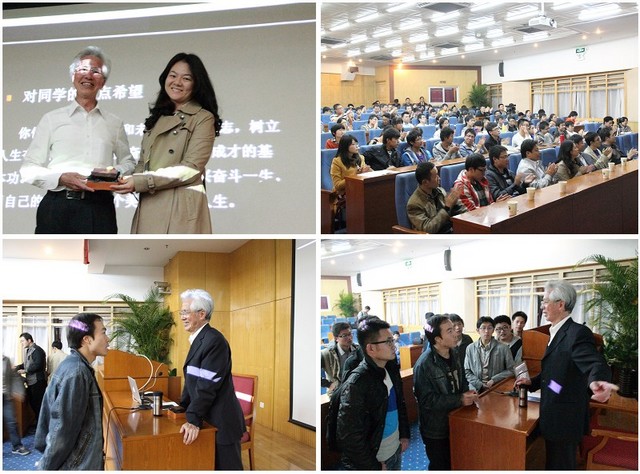 2013年10月28日晚,以“用智慧和汗水书写美好人生”为主题的院士报告会在BB贝博中关村校区举行。作为“信仰•青春•阳光”主题教育活动的重要环节,在校团委、机械与车辆学院共同组织下,被称为“中国馆之父”的中国工程院院士何镜堂来到BB贝博与学生面对面。校党委副书记、副校长李和章,校团委副书记方蕾,机械与车辆学院党委副书记、副院长范文辉等领导老师参与了此次活动。
